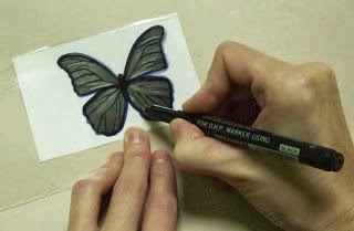 8 . Cuando la mariposa este seca, manténla en la luz y utiliza tu plumón para poder marcar los detalles.